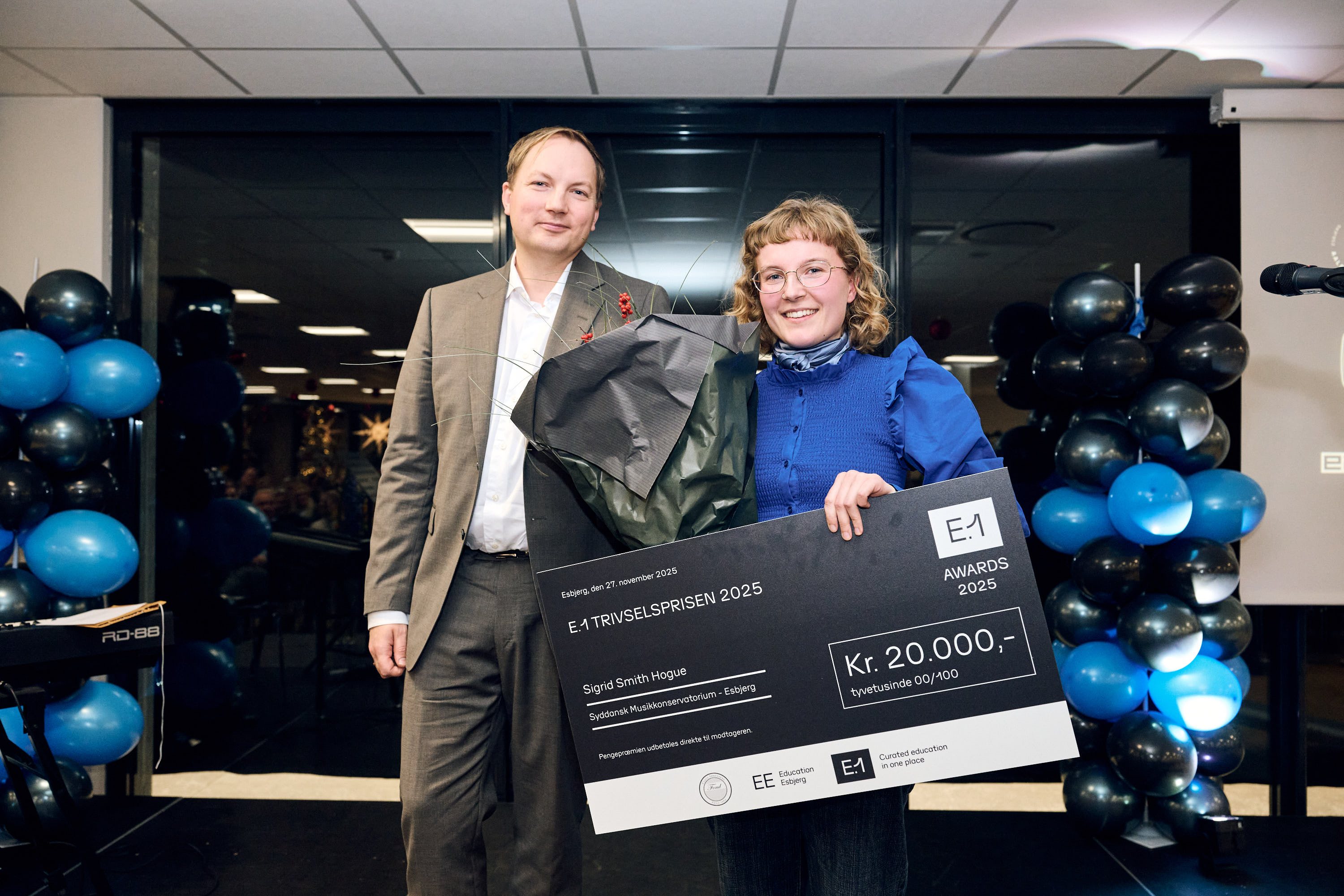 Aftenen bød på faglige priser på tværs af uddannelser, en publikumskåret trivselspris, inspirerende taler og stærke musikalske indslag leveret af de to studerende fra Syddansk Musikkonservatorium, Sigrid Smith Hogue og Mattias Hansen.