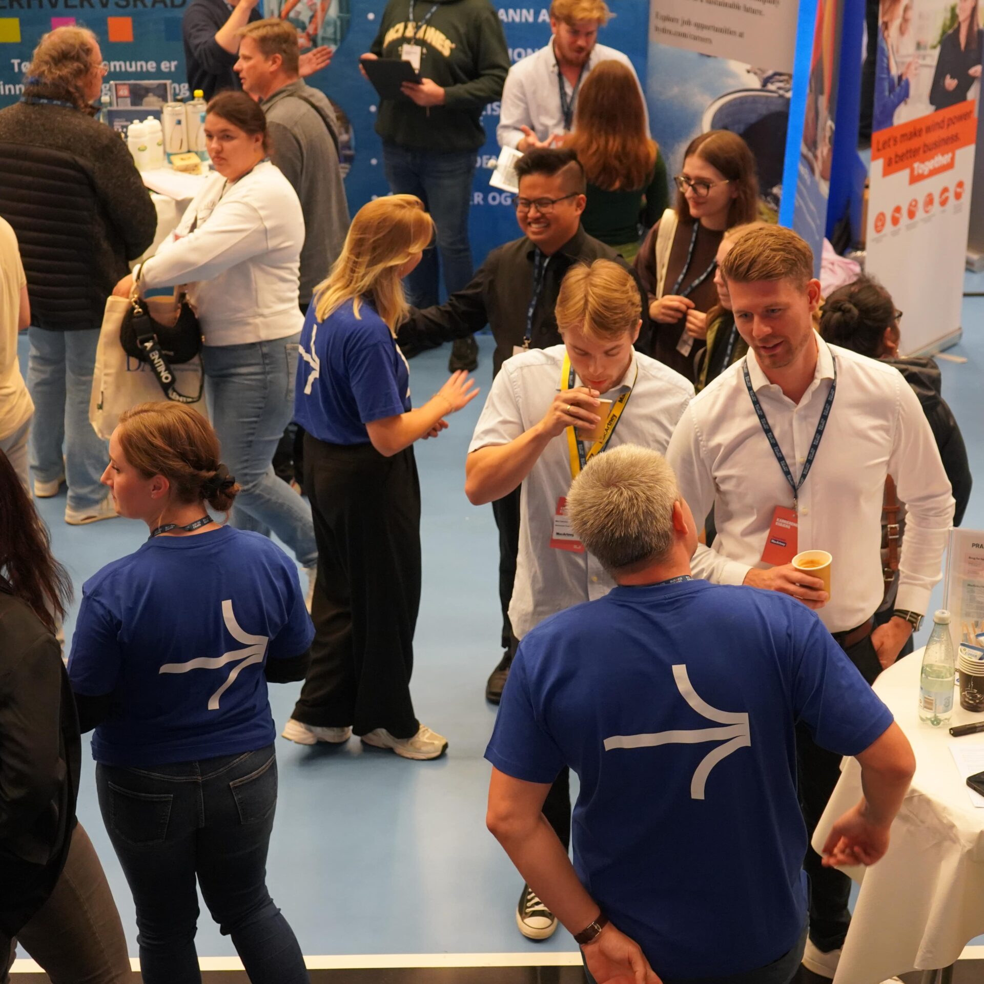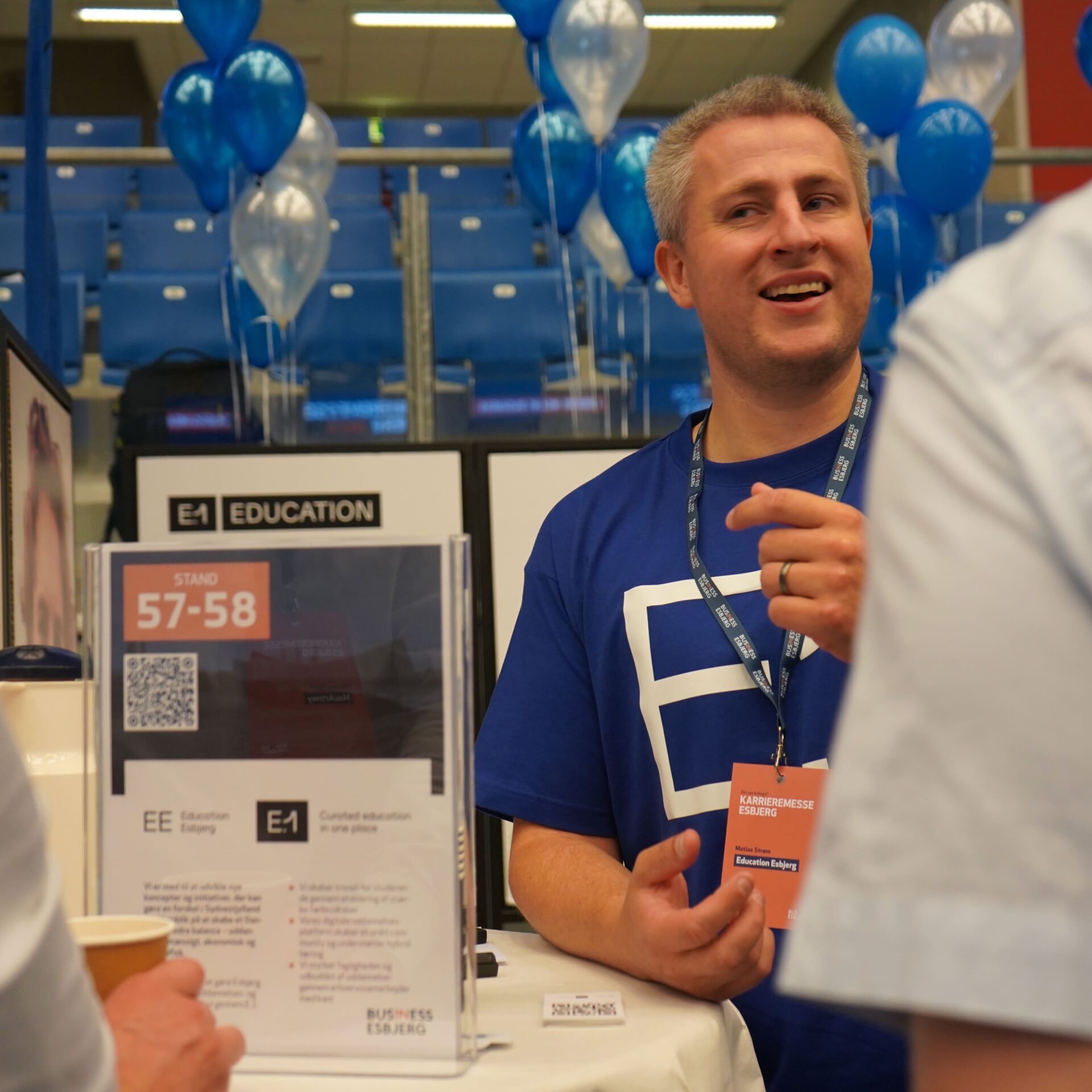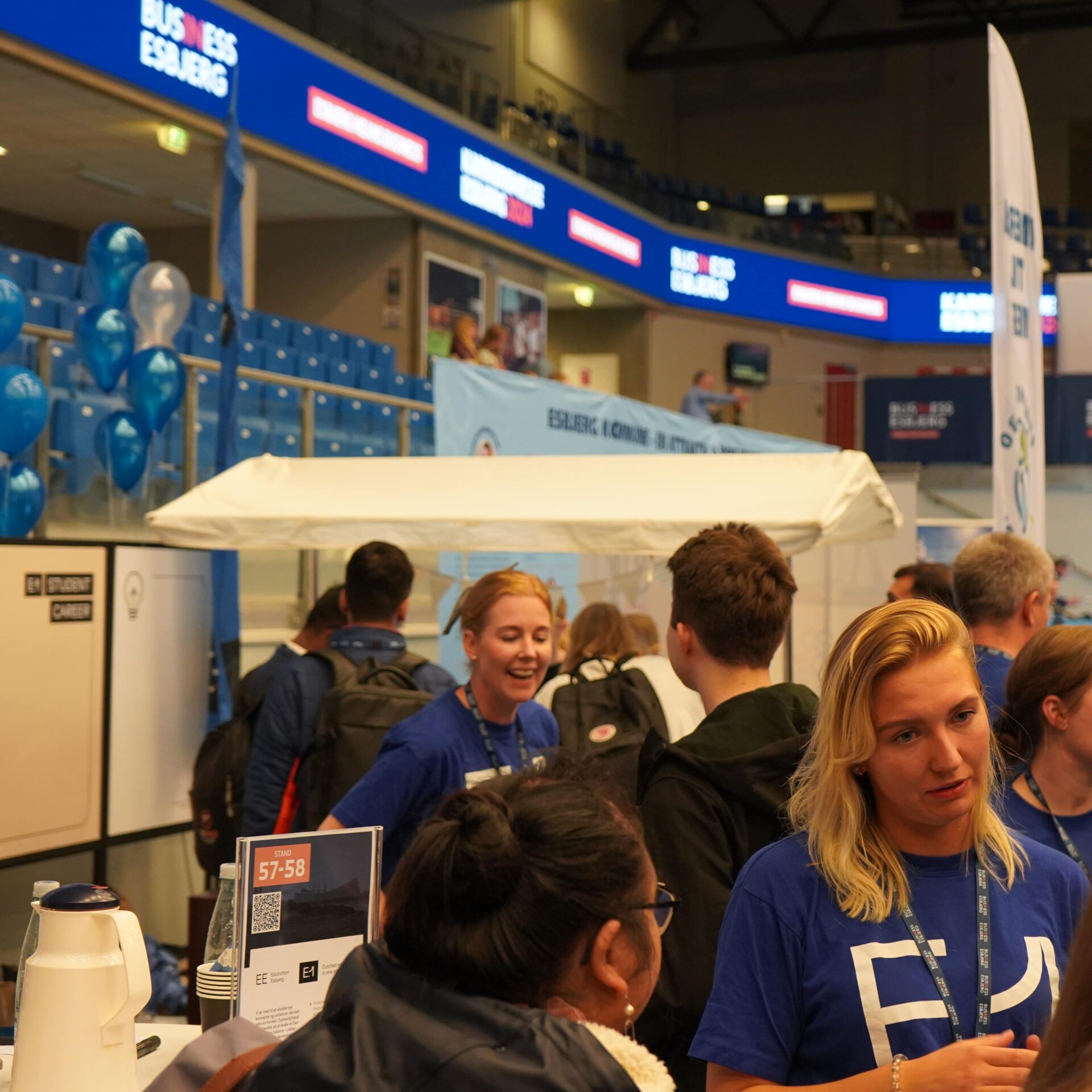 Standen var vel besøgt. Hele dagen. Smil, håndtryk, spørgsmål, idéer, forventninger. Alt samlet i det lille, pulserende hjørne af Blue Water Arena, hvor E.1 Student Career var hovedpersonen.